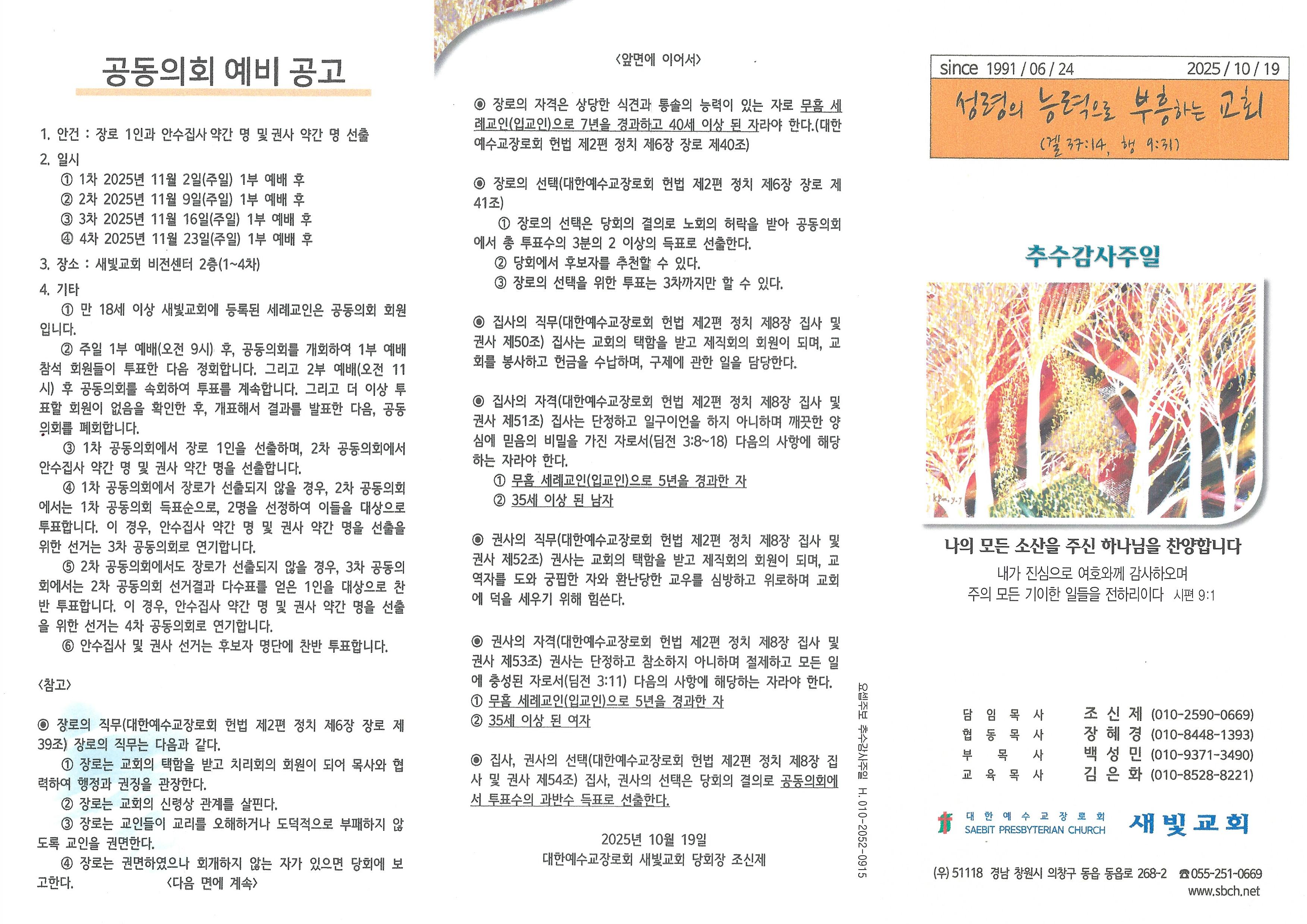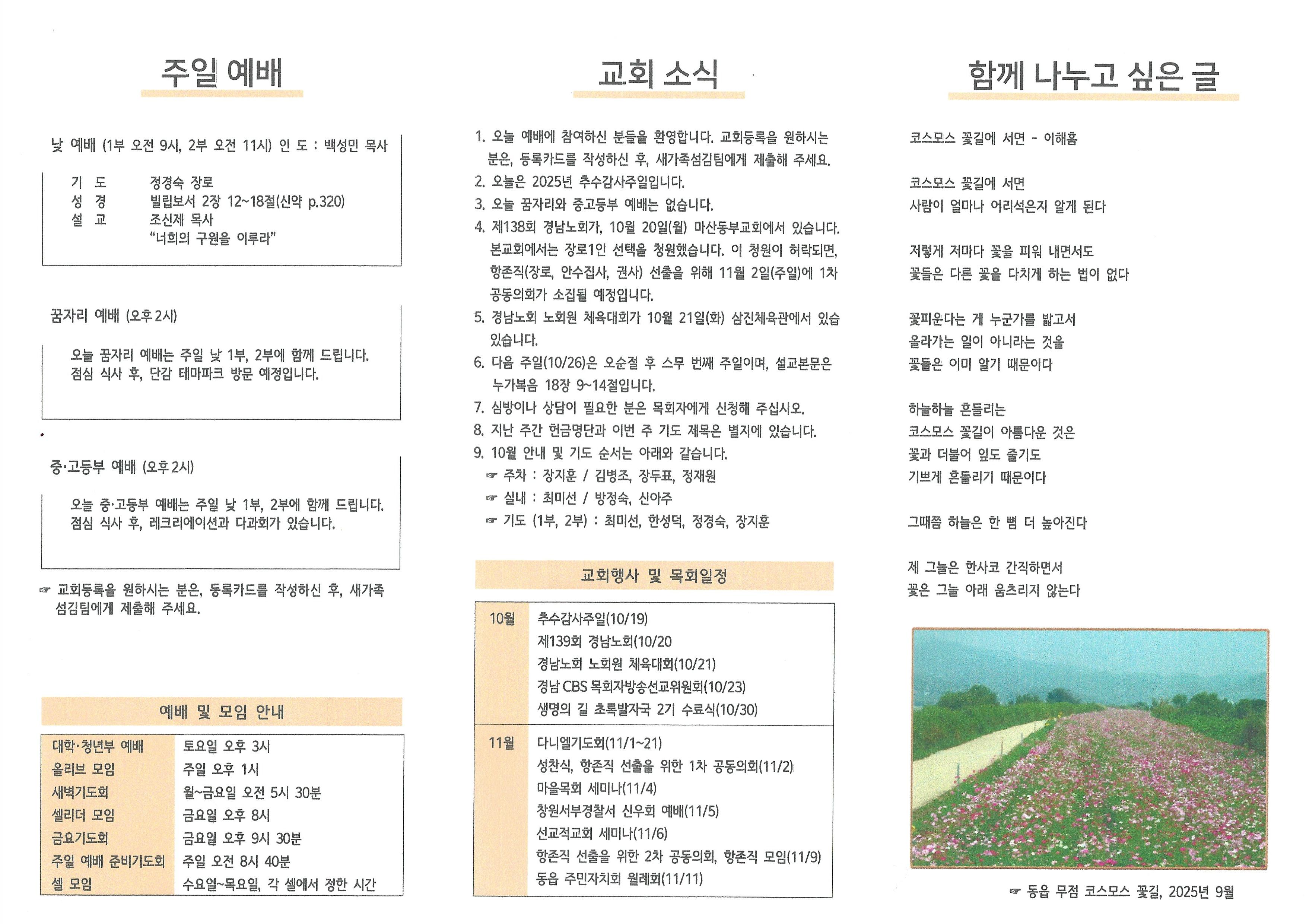 2025년 10월 19일 주보입니다.