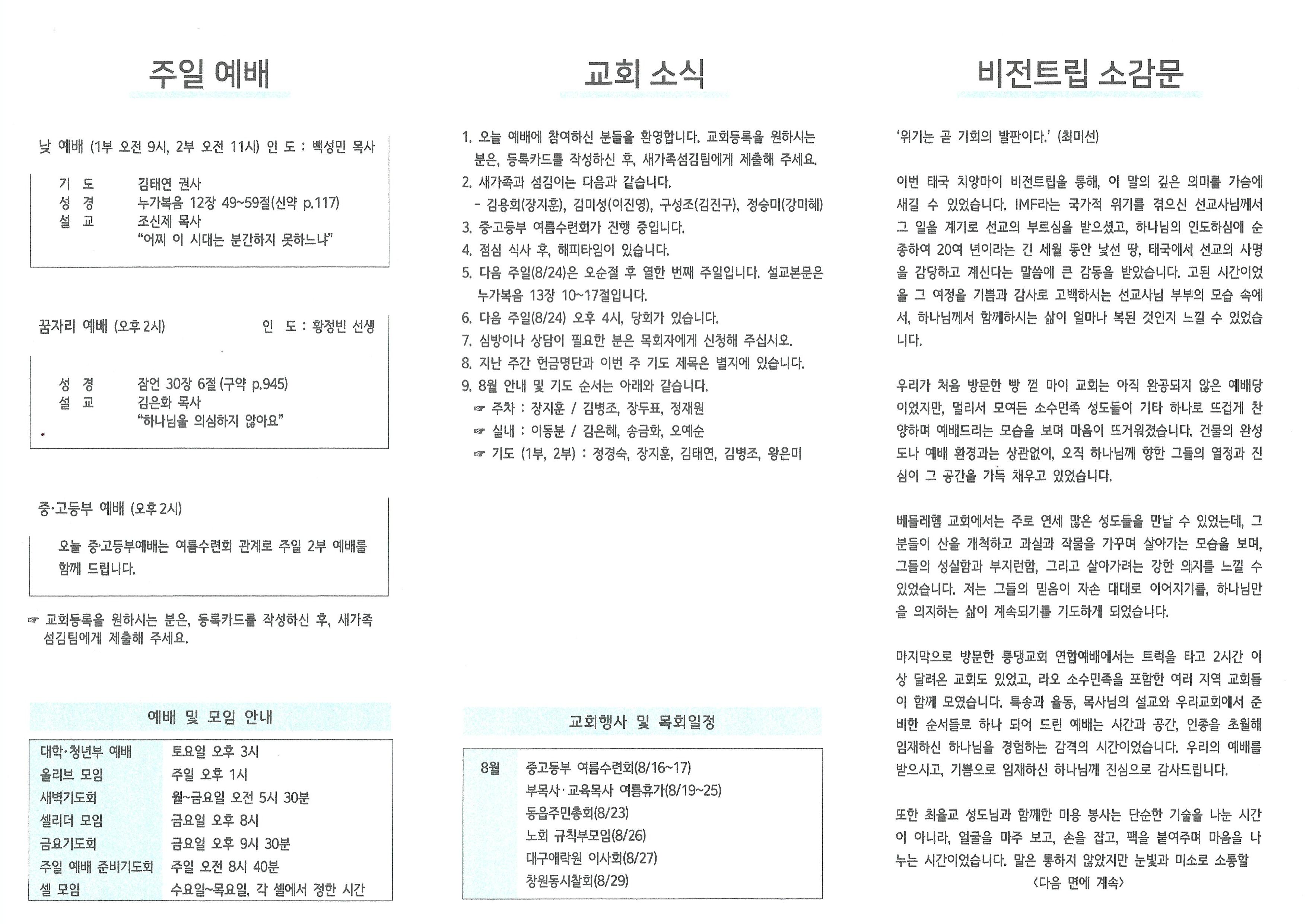 2025년 8월 17일 주보입니다.