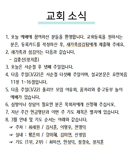 2026년 03월 08일 교회소식